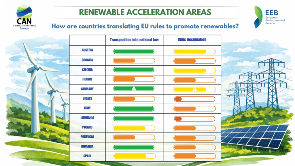 Pentru a urmări evoluția acestui progres, Climate Action Network Europe și European Environmental Bureau au dezvoltat și un instrument online, numit RAA Tracker. Acesta oferă o imagine de ansamblu asupra progresului statelor membre în desemnarea zonelor de accelerare și în aplicarea Directivei RED III. Totodată, scoate în evidență bune practici, identifică lacunele existente și are un rol în sprijinirea dialogului constructiv între autorități, instituții europene și societatea civilă. Instrumentul online include și o analiză comparativă între țări, precum și recomandări de politici la nivel european. Acesta este actualizat constant, pe măsură ce apar noi evoluții, contribuind la o mai bună înțelegere a modului în care statele membre planifică și desemnează aceste zone de accelerare.