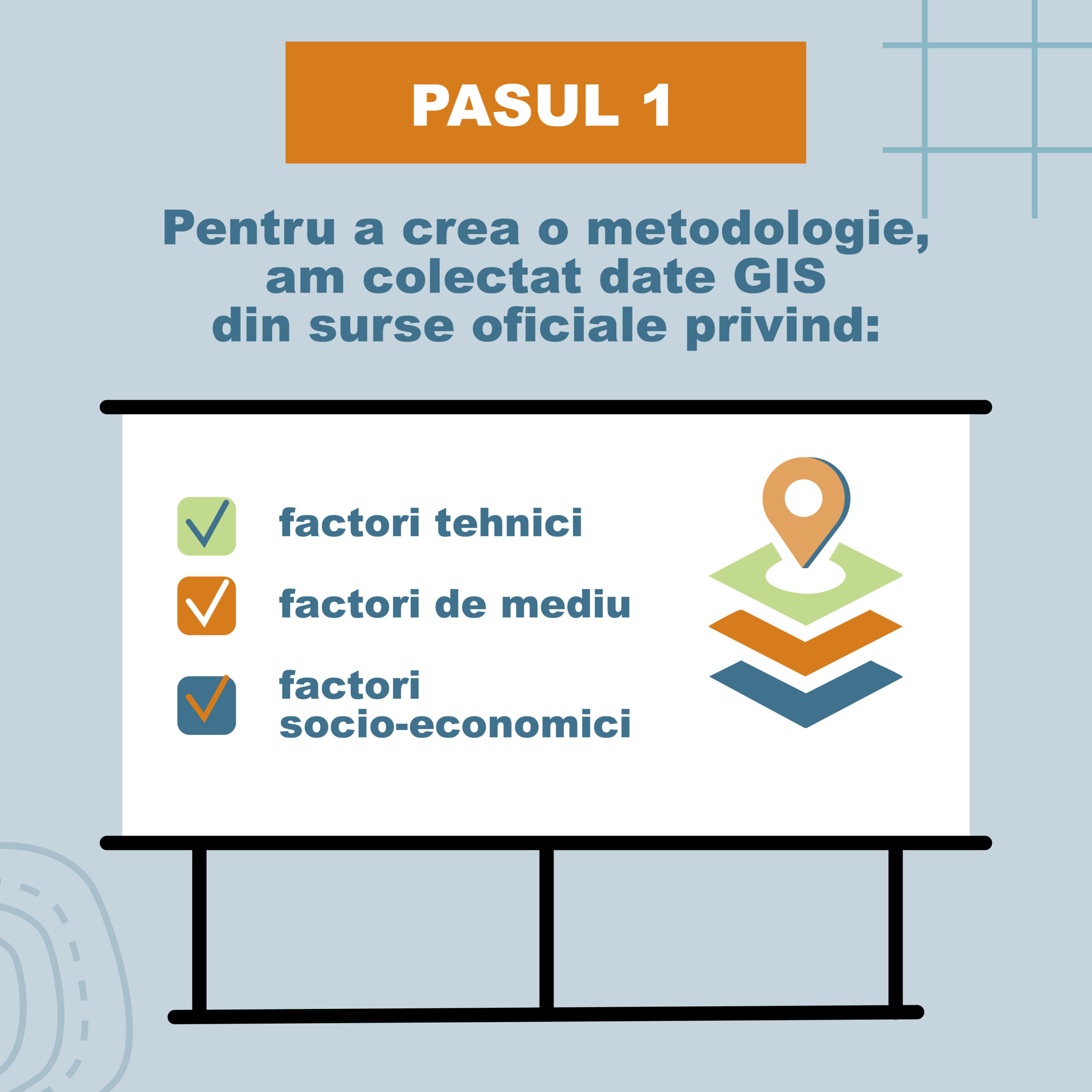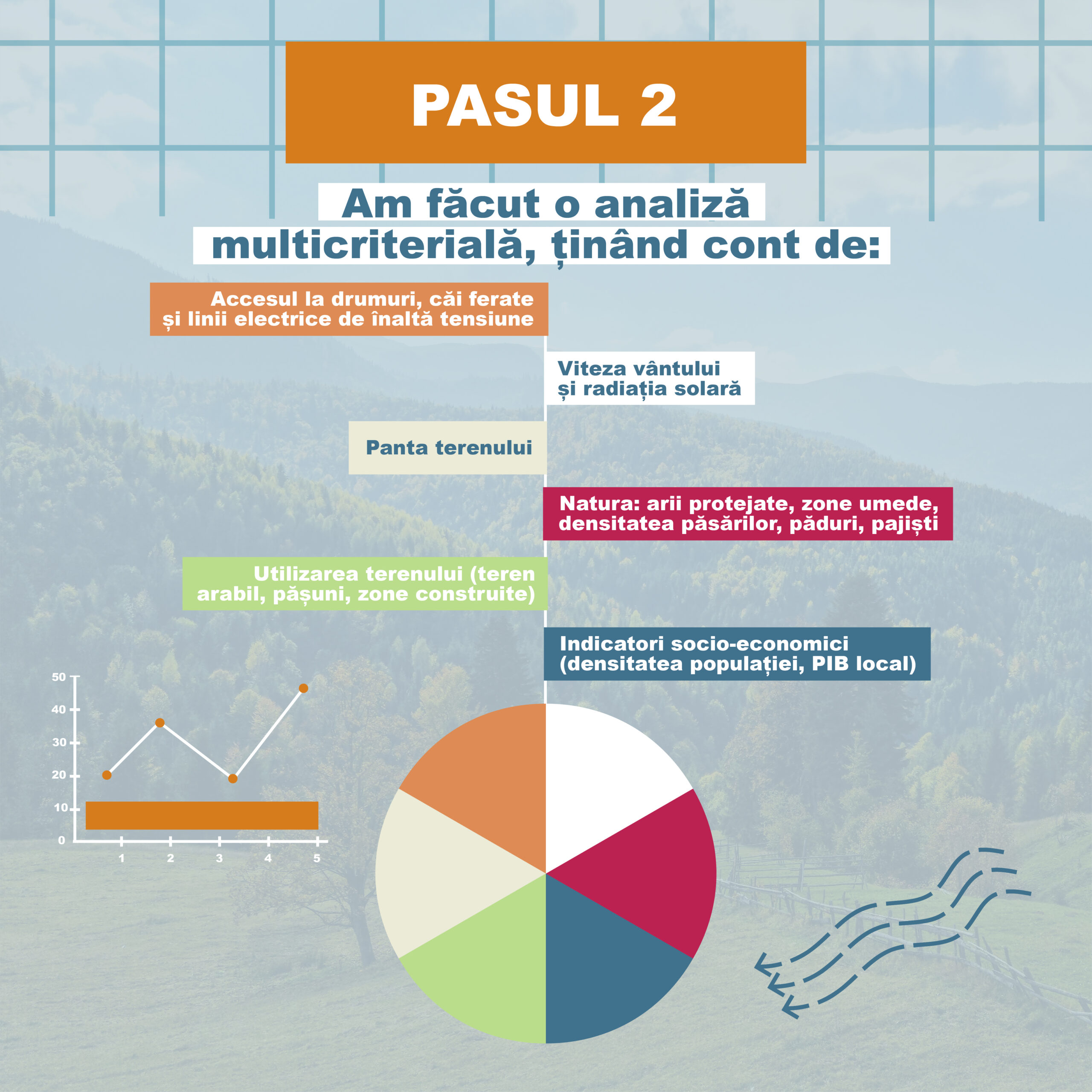 Pentru a crea metodologia, experții din cadrul proiectului au început prin colectarea seturilor de date GIS disponibile privind factori tehnici, de mediu și socio-economici din surse oficiale. Ulterior, au propus un set de 34 de criterii și au aplicat o parte din acestea pentru a identifica zone de accelerare pentru energie regenerabilă. În analiză, s-a ținut cont de criterii precum accesul la drumuri, căi ferate și linii electrice de înaltă tensiune, viteza vântului & radiația solară, panta terenului, ariile naturale protejate, pădurile, zonele umede și alte zone sensibile, dar și indicatori socio-economici precum densitatea populației și PIB-ul local.